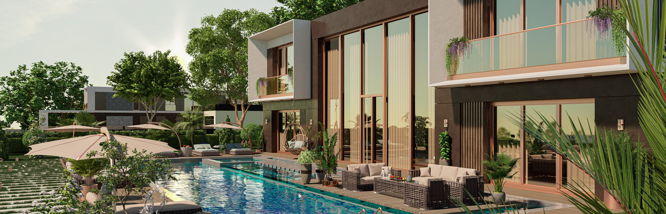 مع مساحة الحدائق لكل فيلا بين ١٣٠٠ م٢ و ٢٥٠٠ م٢
